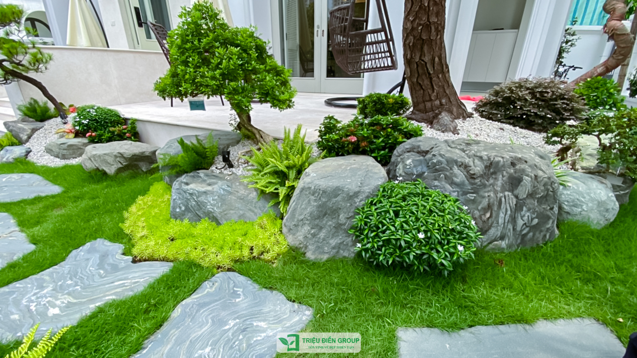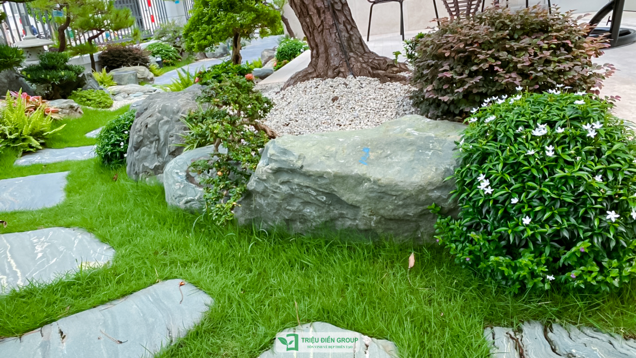 - Bố trí lại lối đi, tiểu cảnh sỏi đá và cây xanh một cách khoa học – nhẹ nhàng – có chiều sâu, mang lại không gian hài hòa và thoáng đãng.